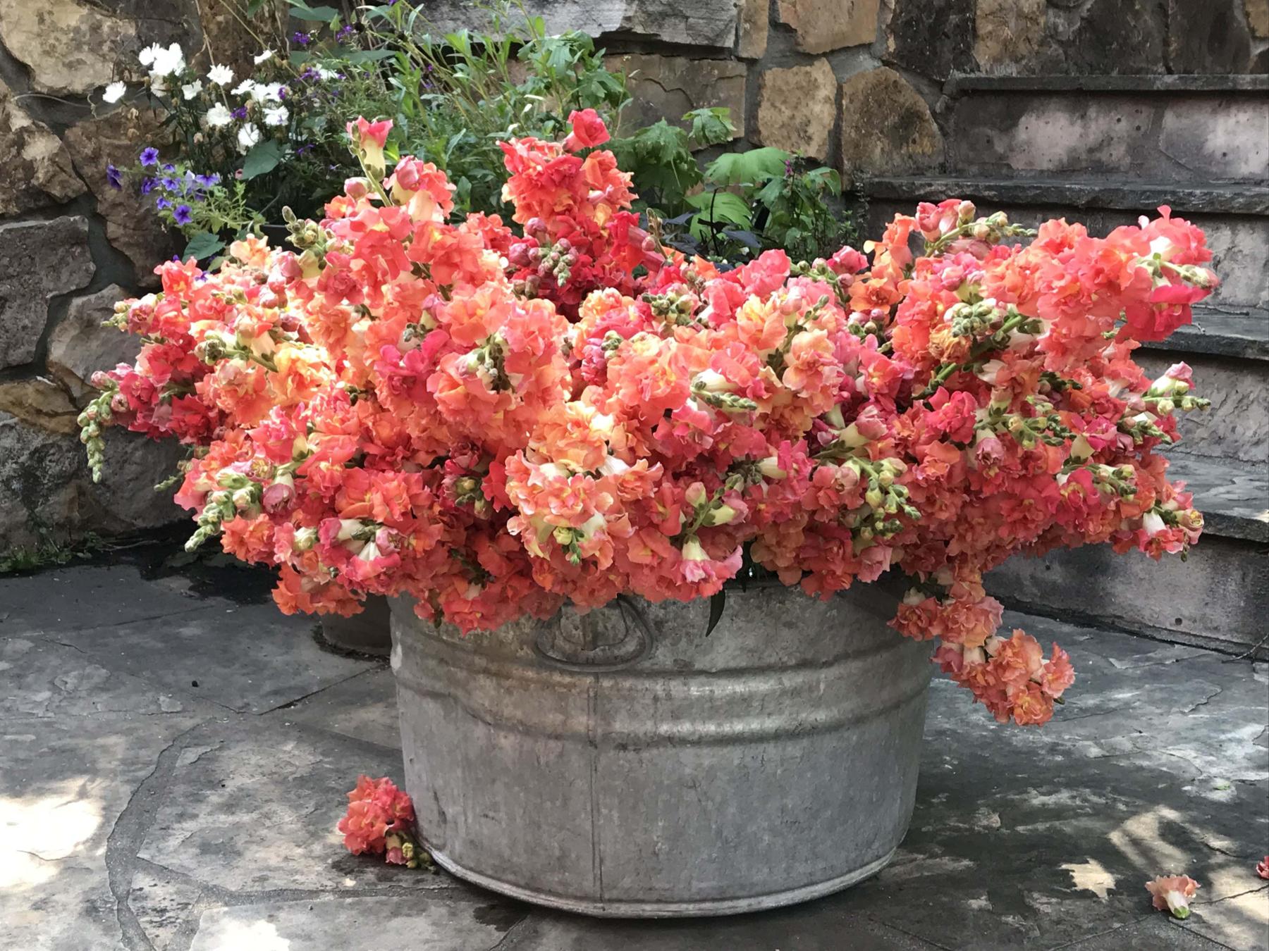 We grow poppies, dahlias, sunflowers, stock, scabiousa, snapdragons, sweet peas, poenies, anemones, and ranunculus. And we deliever in our '56 Dodge, painted to match some of our favorite flowers.